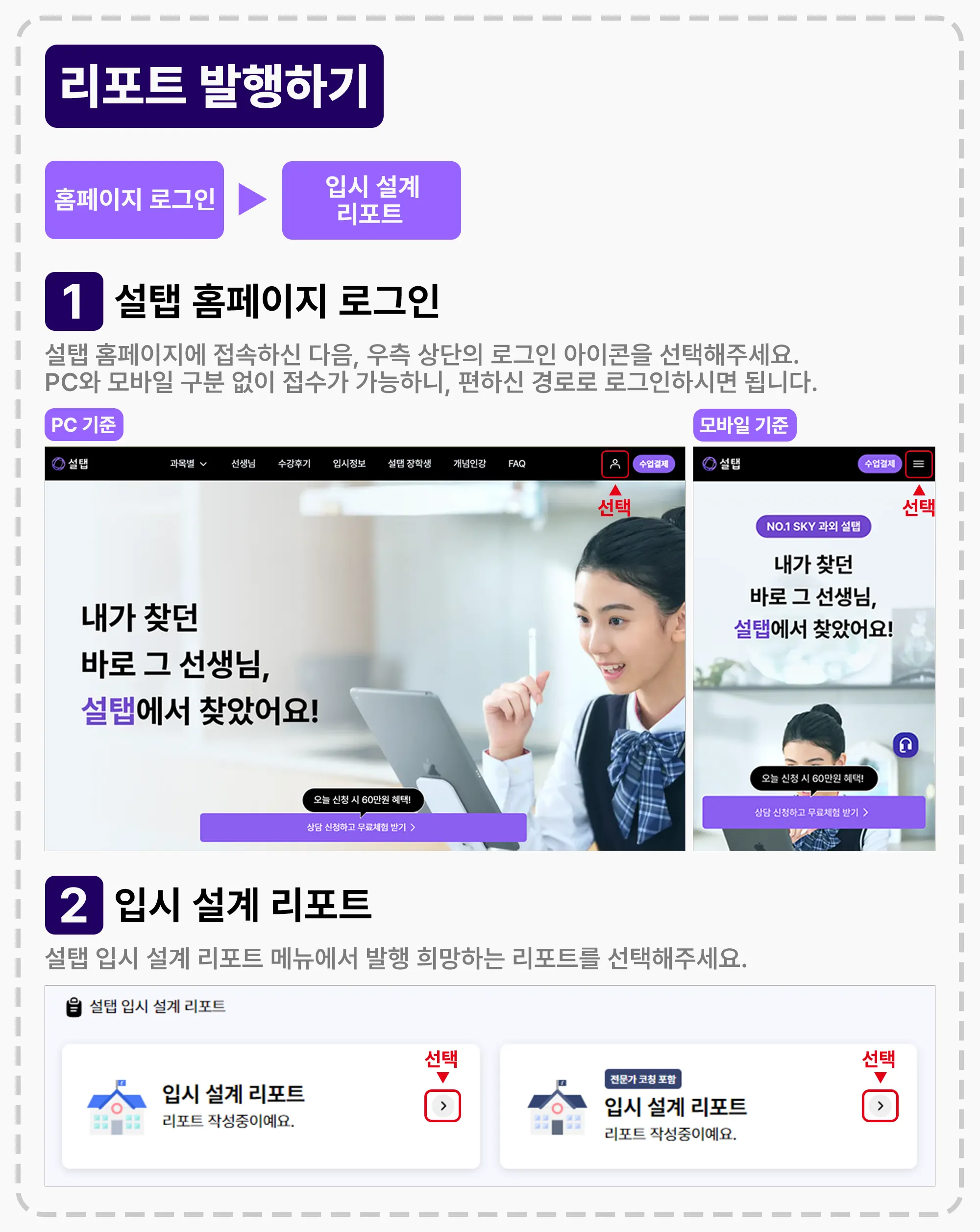 입시 설계 리포트는 설탭 홈페이지에서 발행하실 수 있습니다!