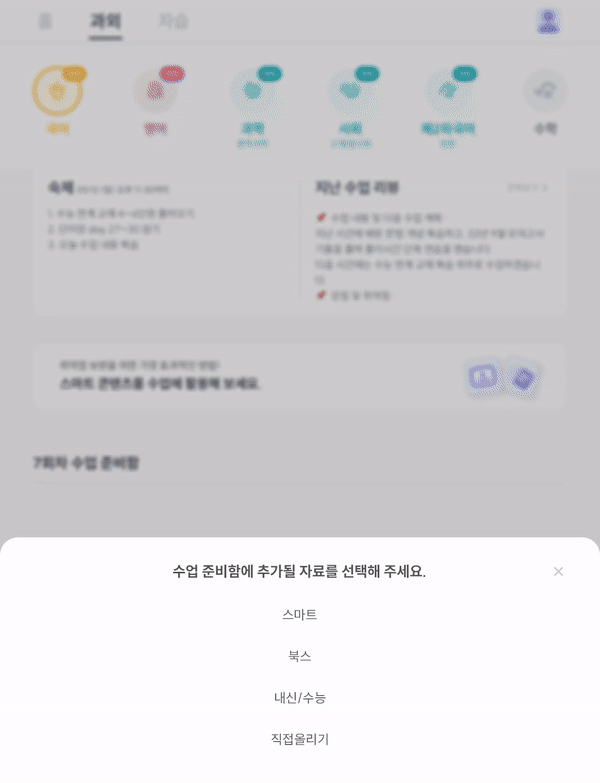 설탭 앱에서 등록한 교재로 숙제를 합니다.