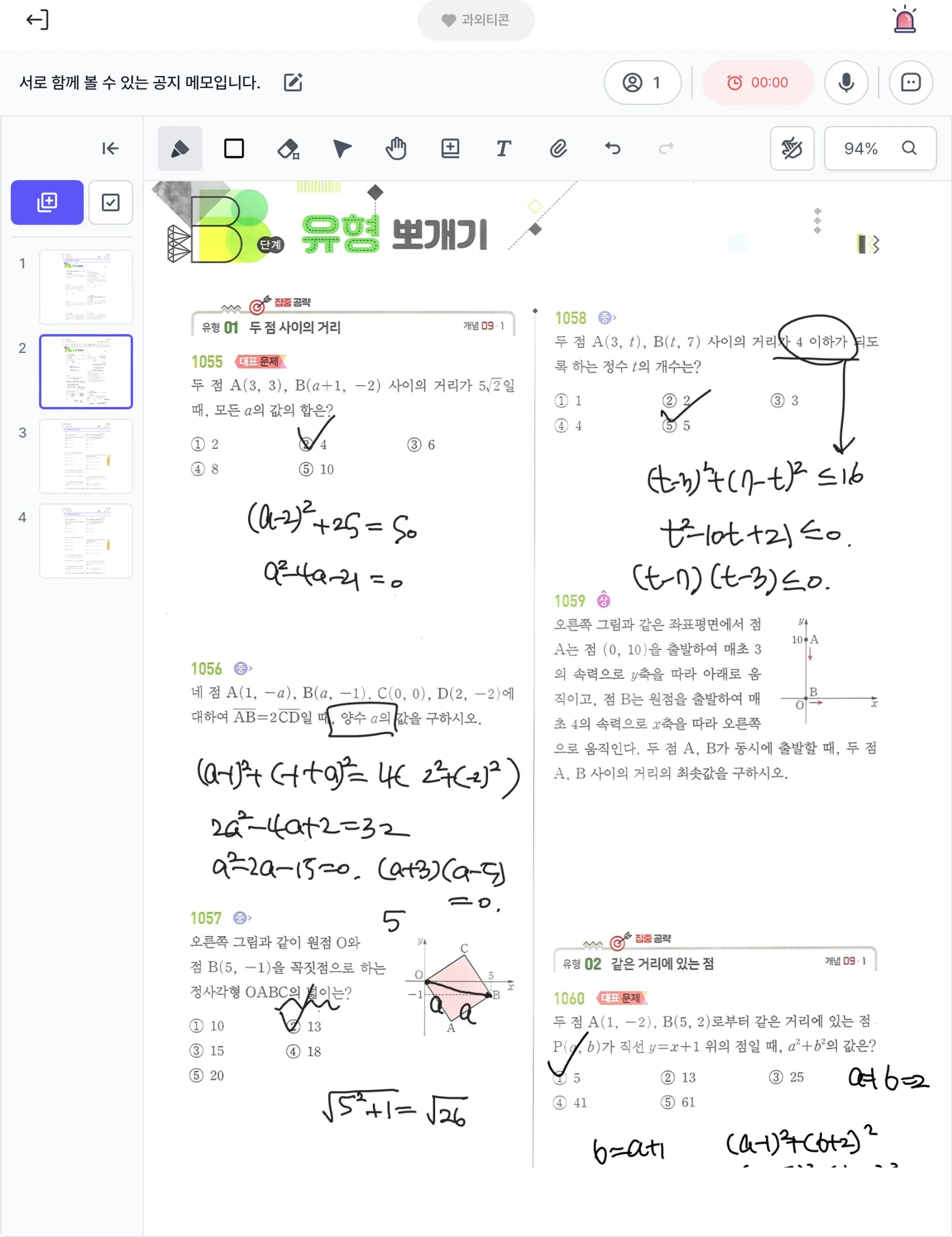 숙제를 얼마나 했는지 체크하고, 과외방에 1분 전에 들어갔어요.