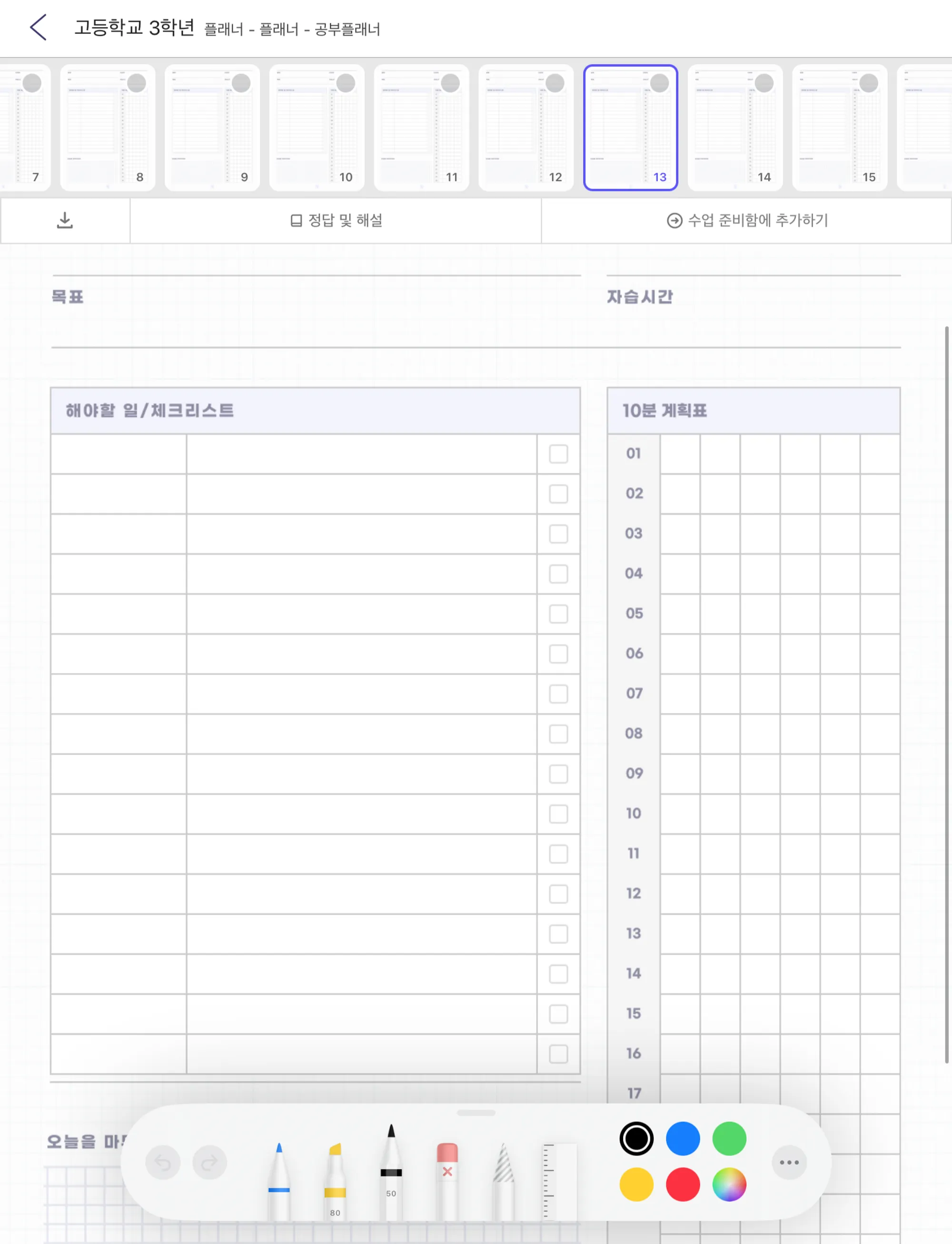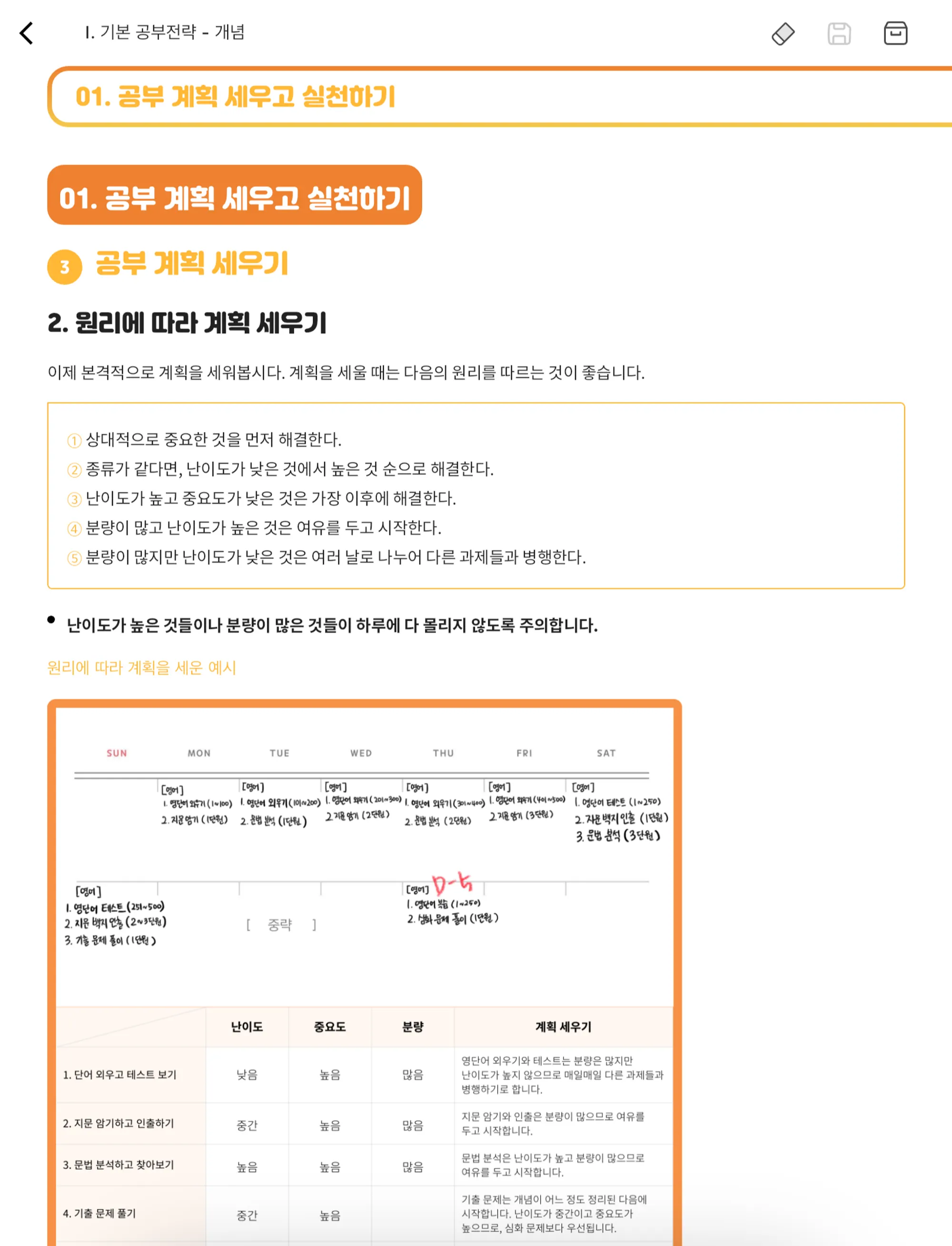 학습 자료실에서 오늘의 공부를 계획합니다.