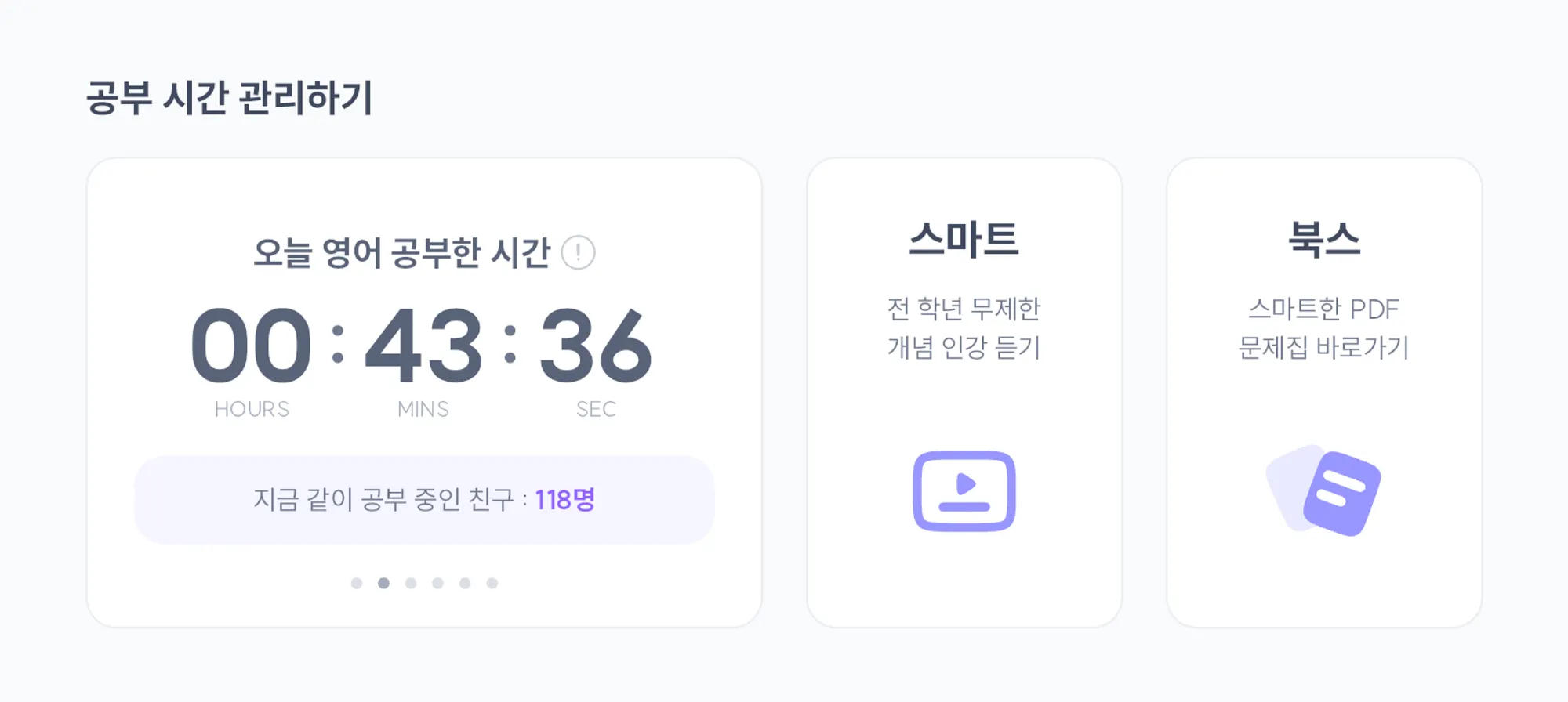 설탭에서 자습이나 숙제를 위해 교재/스마트 자료로 공부한 시간이 자동으로 측정돼요.