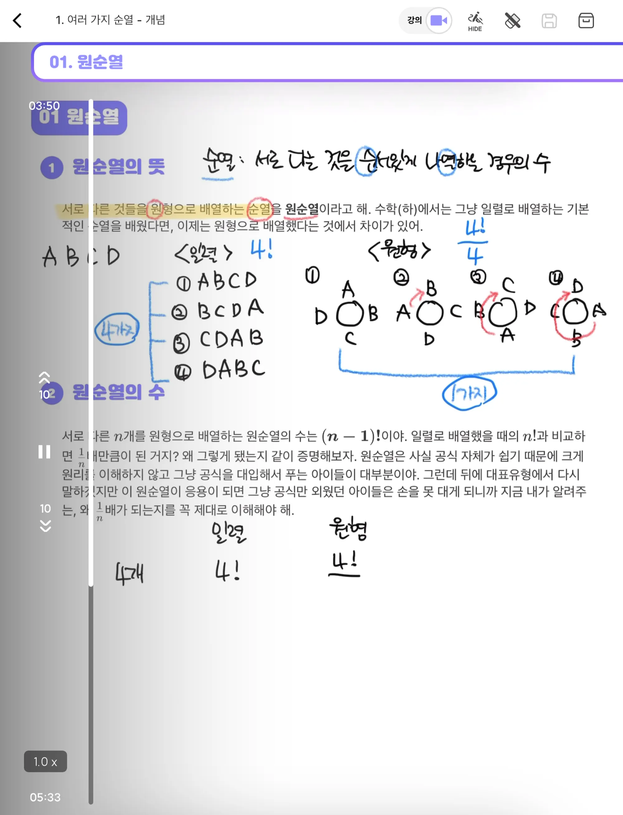 수업이 종료된 후 선생님과 풀었던 문제를 종이책에 다시 풀어봅니다.