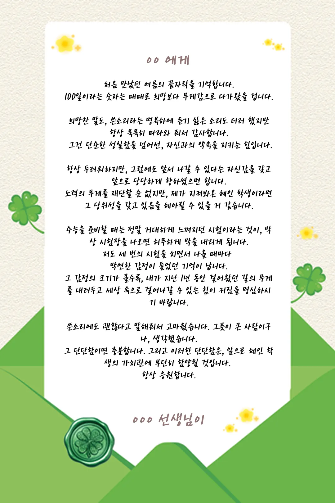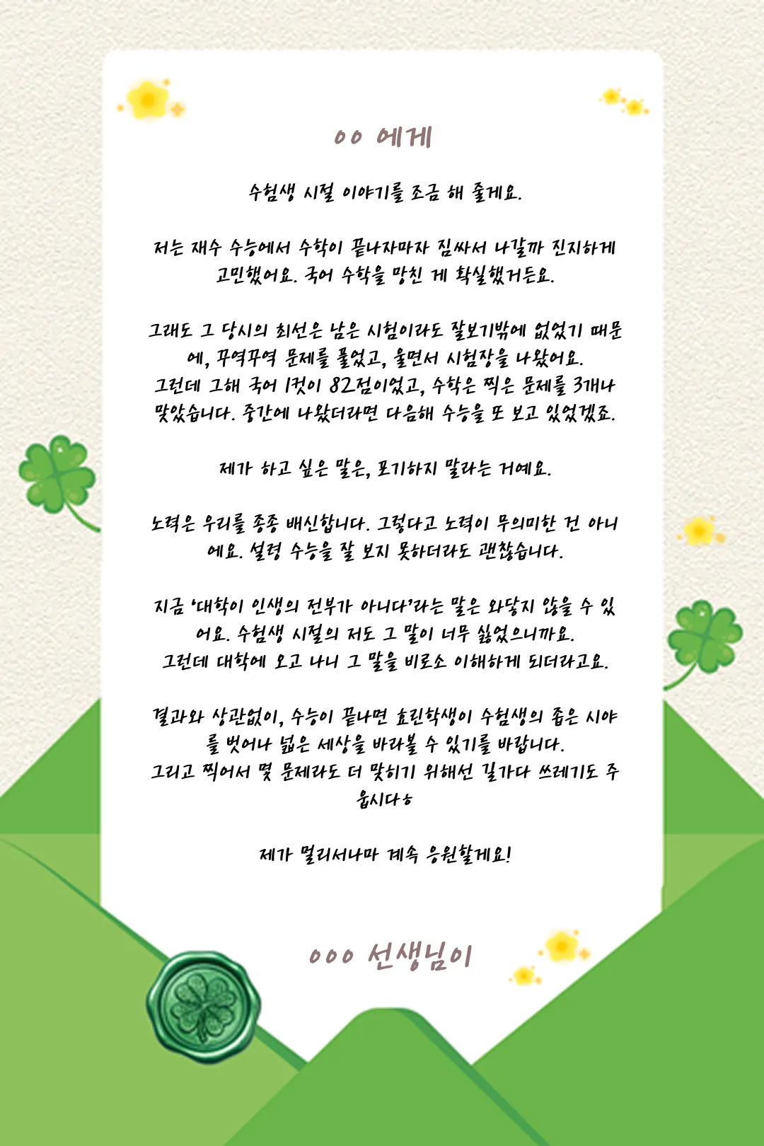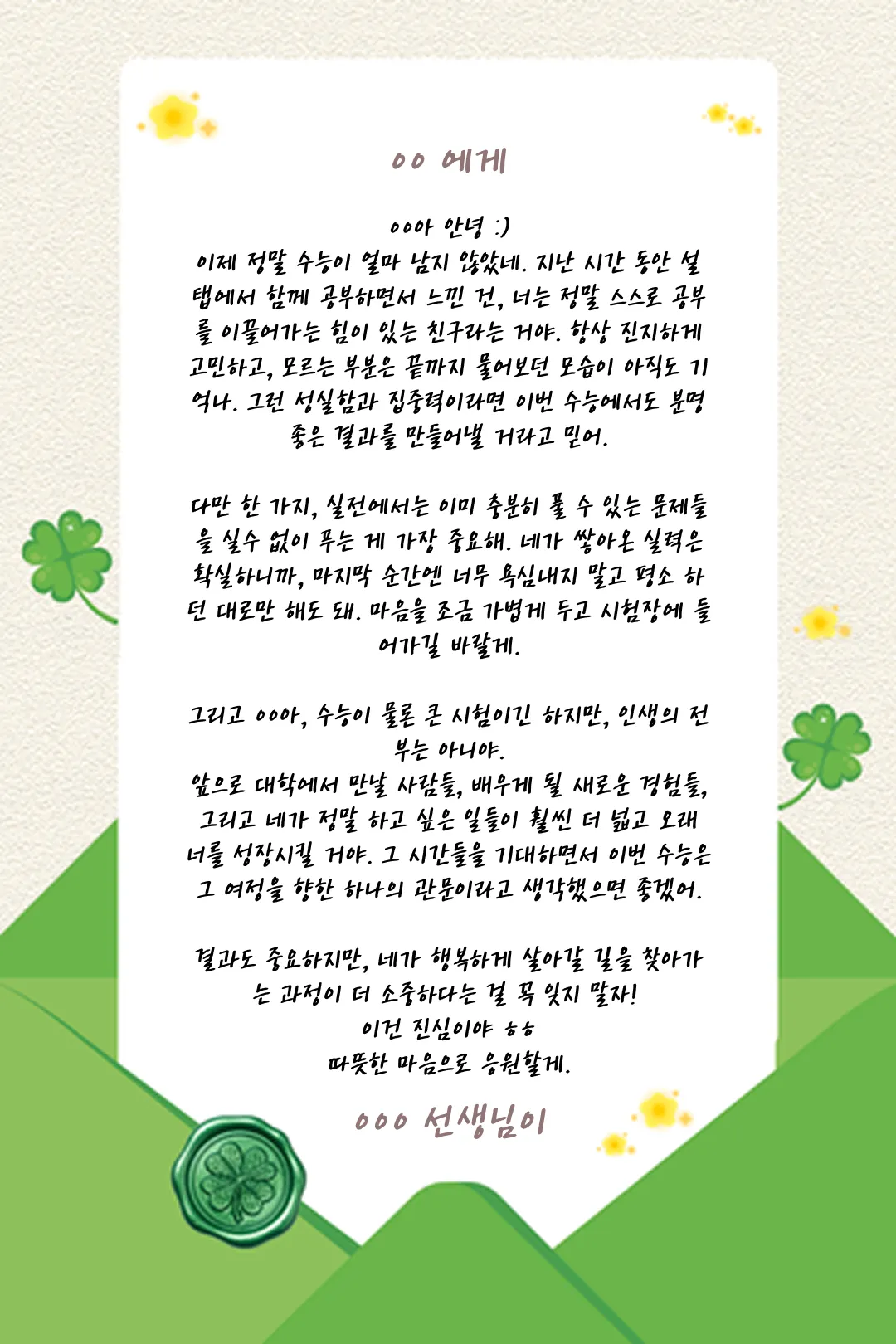 첫 번째, 선생님이 학생에게 전한 수능 응원 편지