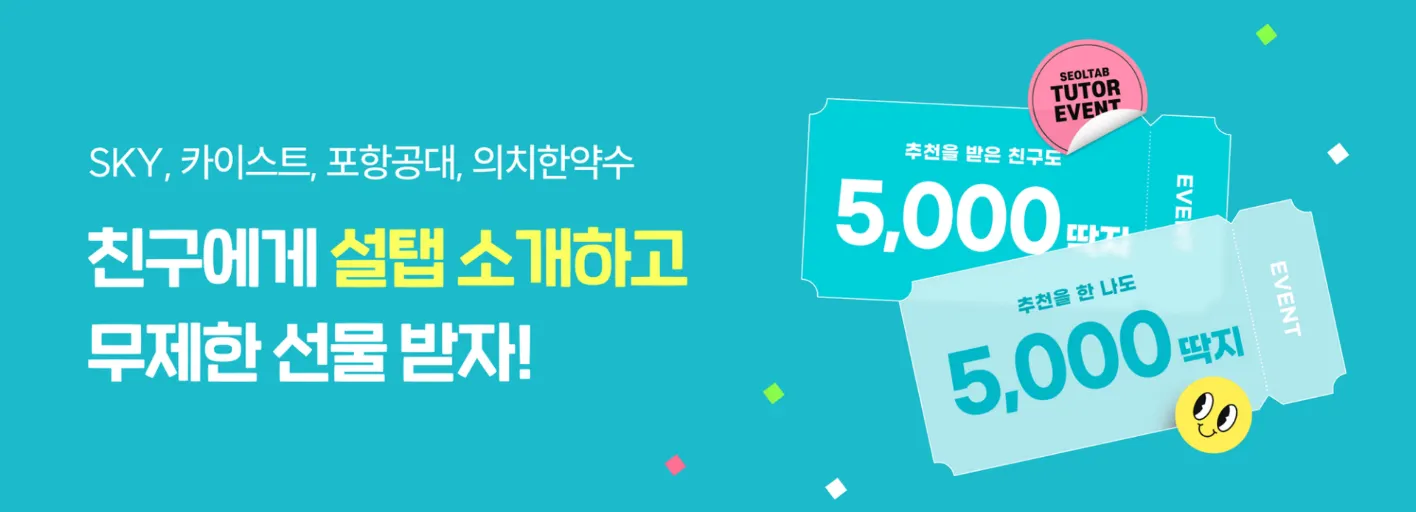 참여 혜택 : 아래 조건 달성 시, 추천한 선생님과 추천받은 친구에게 각각 5,000 딱지!