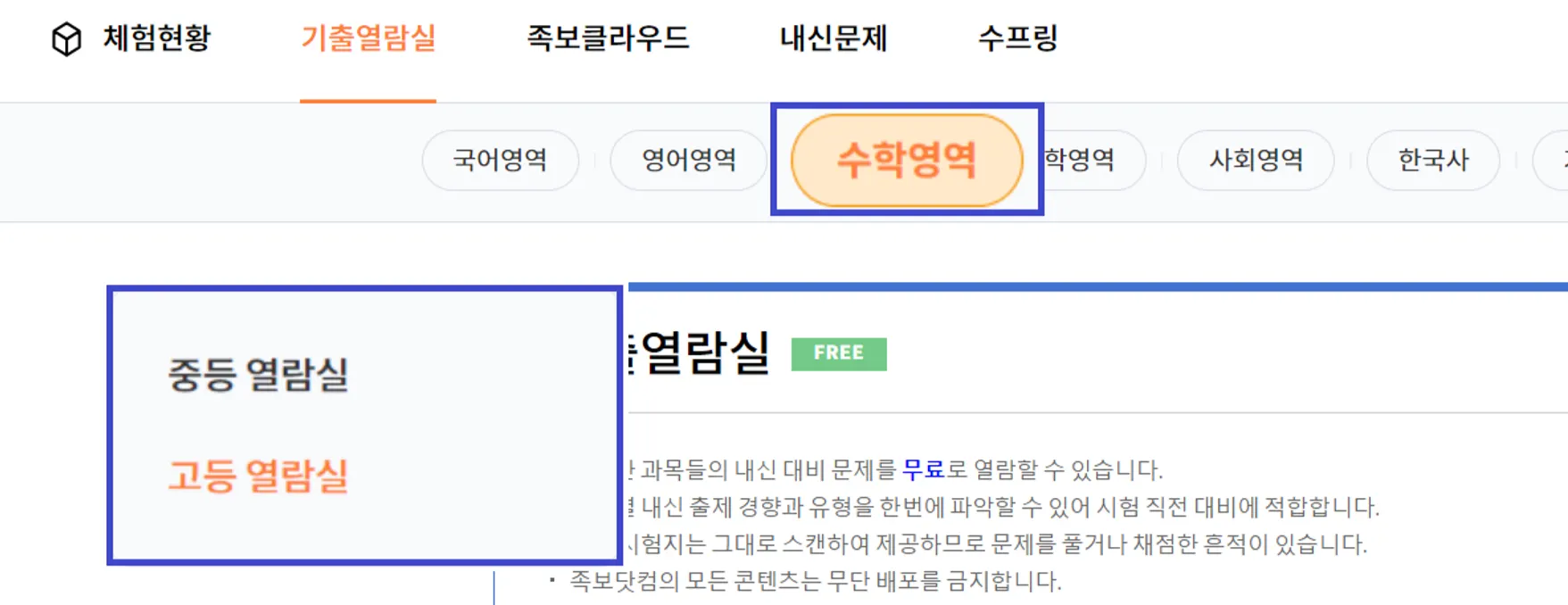 학교 기출 문제를 풀어보며 출제 경향을 파악하고 킬러 문제까지 풀어낼 수 있도록 연습해야 합니다. 이때 시험 시간 내 문제를 다 풀 수 있도록 타이머를 활용해서 시간 분배 연습을 해보는 것도 좋은 방법입니다.