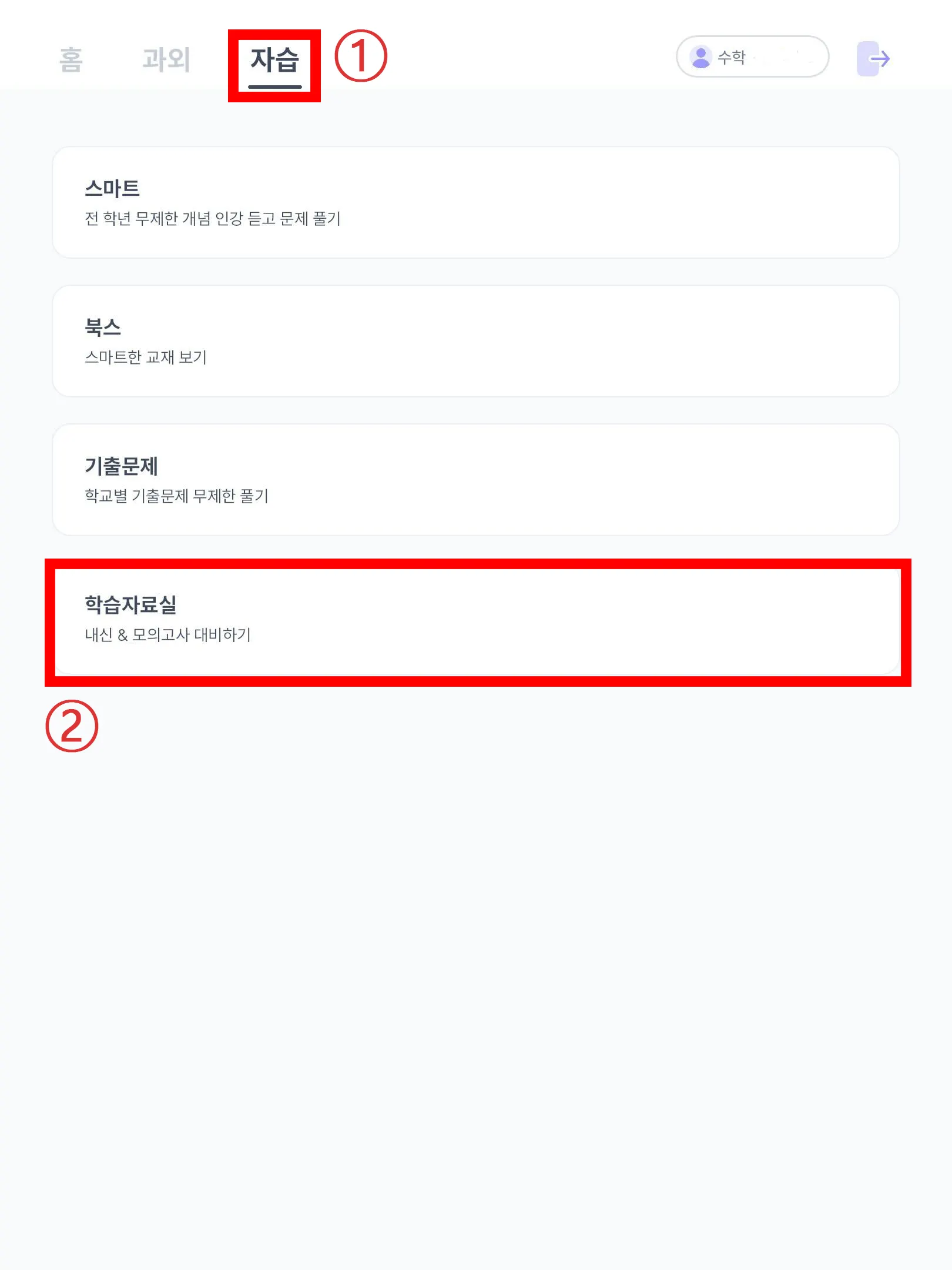 경로 : [아이패드] - [학생 홈] - [자습] - [학습자료실] - [레벨테스트 & 맞춤형 특강]