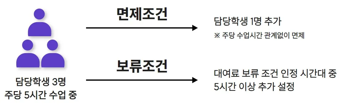 주 8시간 이상 혹은 담당 학생 4명 이상 : 면제