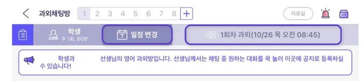 과외채팅방 내에서 일정 변경 부탁드립니다.