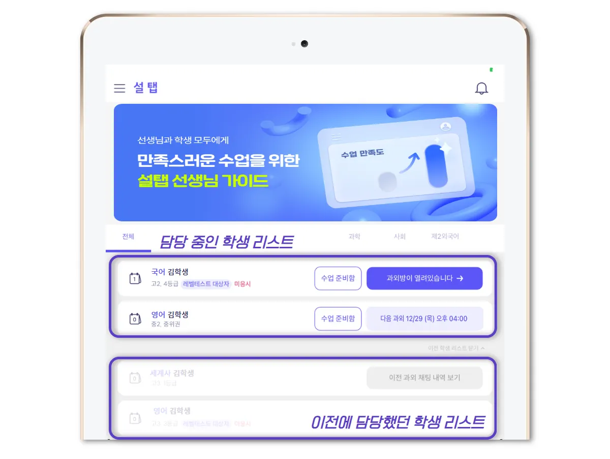 설탭 앱으로 학생과 연결되지 않으면 학생 리스트에서 확인 불가