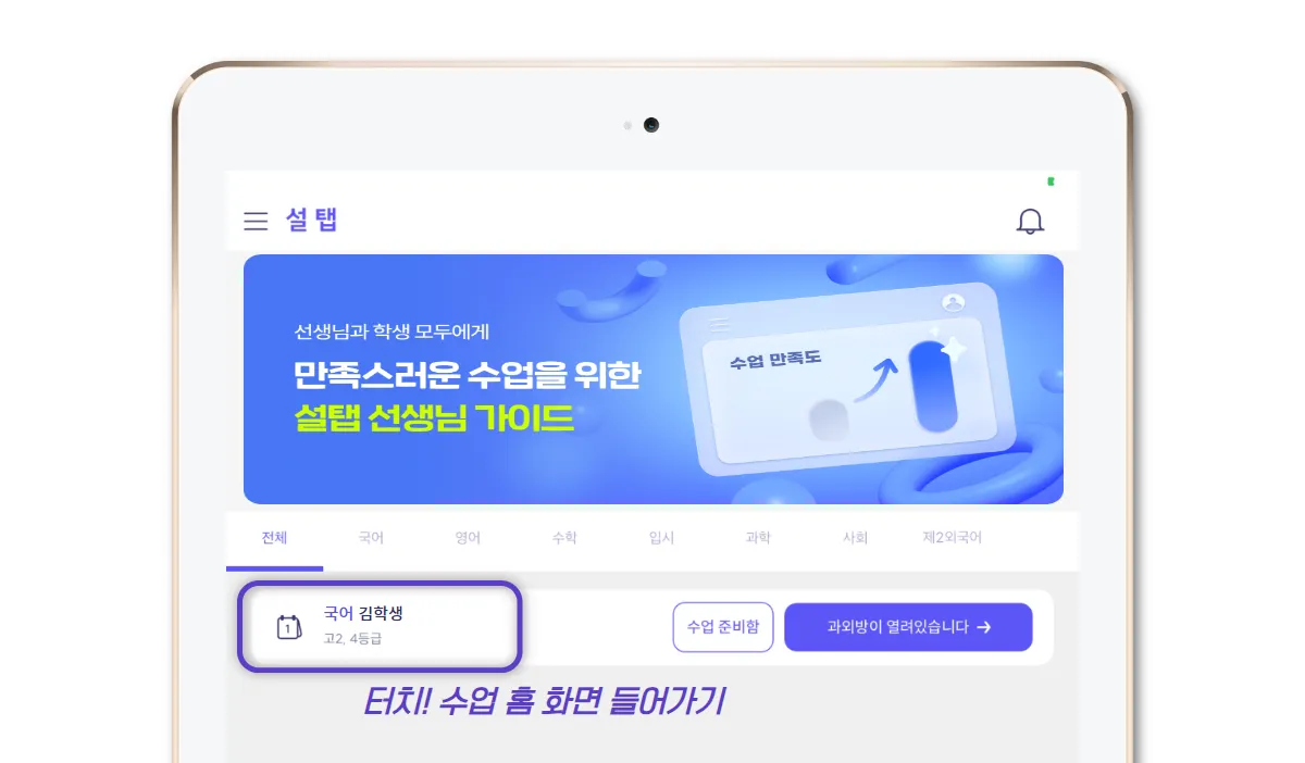 매칭된 학생의 이름을 클릭하면 [수업 홈] 화면에 들어갈 수 있습니다.