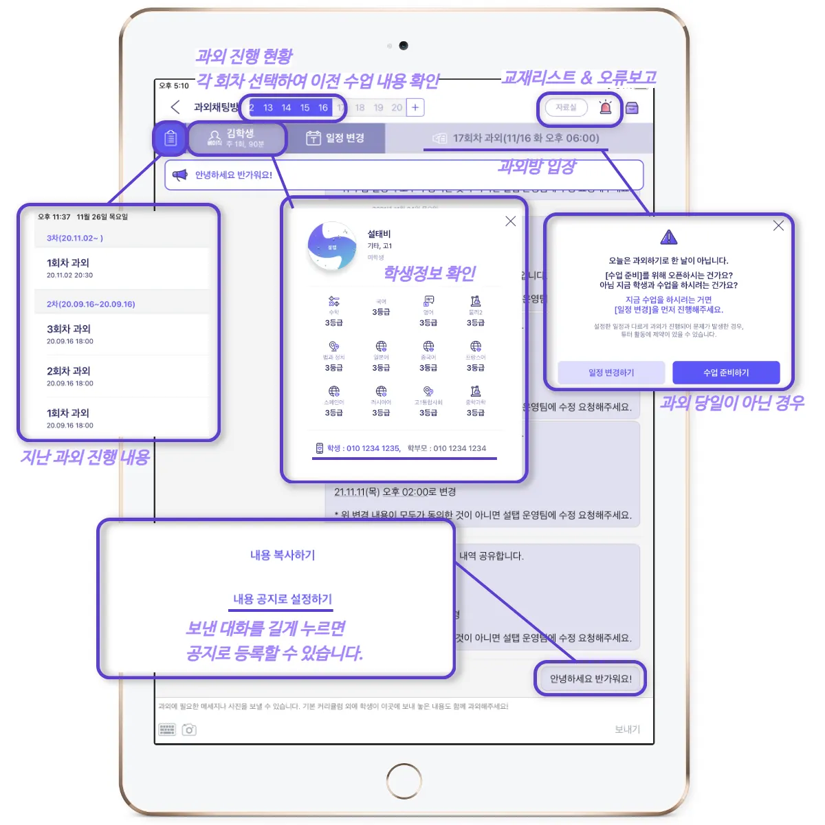 과외채팅방으로 들어가면 메인 화면이 나타납니다.