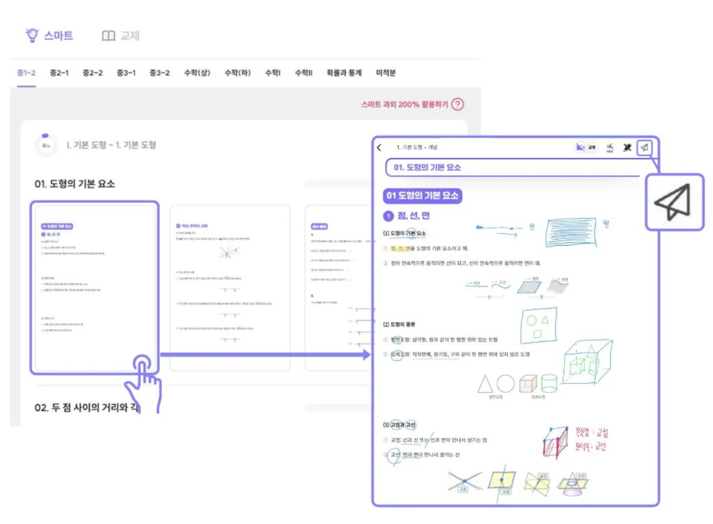 학생이 시중 교재를 등록하지 않더라도 스마트 콘텐츠를 이용한 개념 수업 및 문제풀이 수업까지 진행 할 수 있습니다.