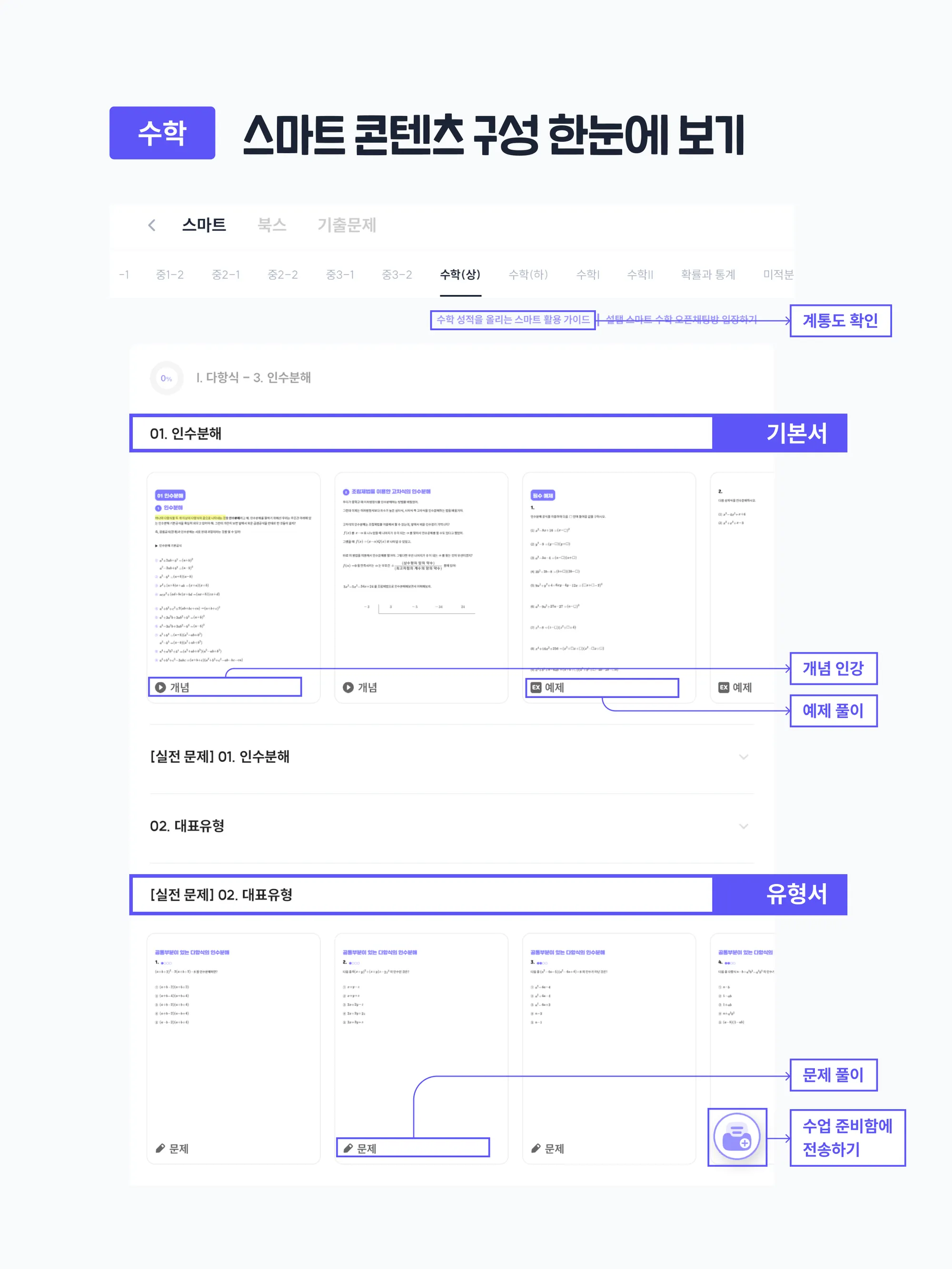 개념부터 문제 풀이 수업까지 모두 가능하도록 교재가 준비되어 있어