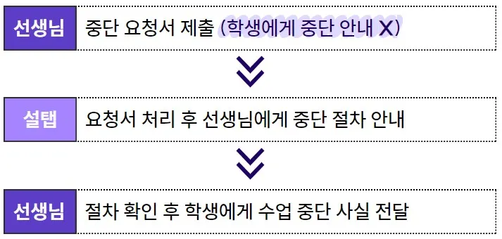 담당 중인 학생과의 모든 수업 및 설탭 선생님 활동이 중단됩니다.