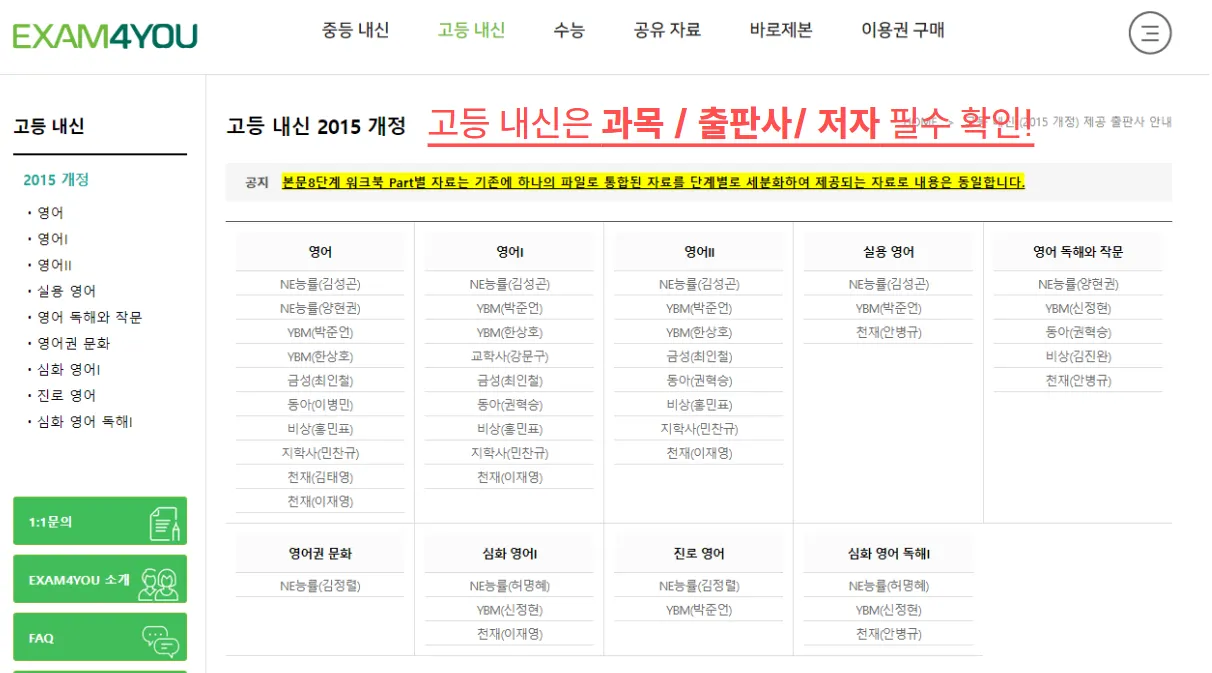 영어 과목 학년 / 세부 과목별 내신 대비 가이드 바로 가기